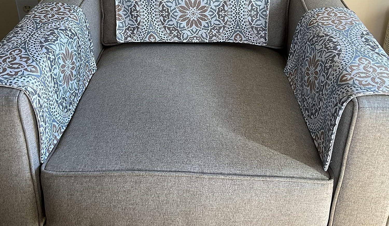 These professionally handmade armrest covers, crafted in the USA, fit sofas, loveseats, RVs, recliners, and theater seats. Made from durable, soft polyester, they protect furniture from stains and spills while adding style with a reversible brown medallion design and solid color backing. Measuring 14x18 inches, they are easy to clean with a damp cloth and enhance any room’s decor. Headrests are sold separately.